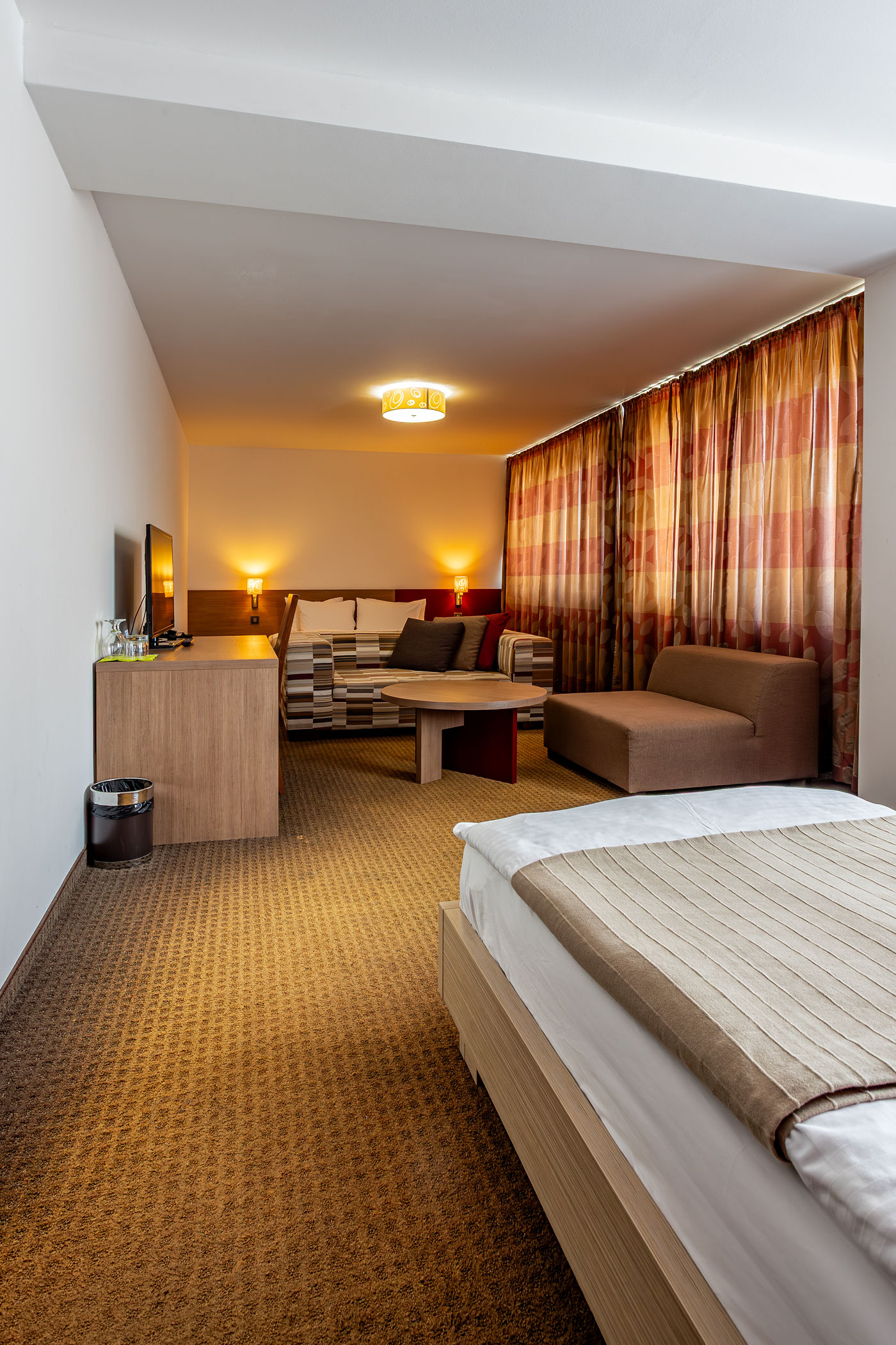 Pokój De Luxe oferuje wyższy standard zakwaterowania dla maksymalnie 4 dorosłych osób. Do dyspozycji gości jest prywatna łazienka z wanną i prysznicem, kosmetyki toaletowe oraz Wi-Fi.