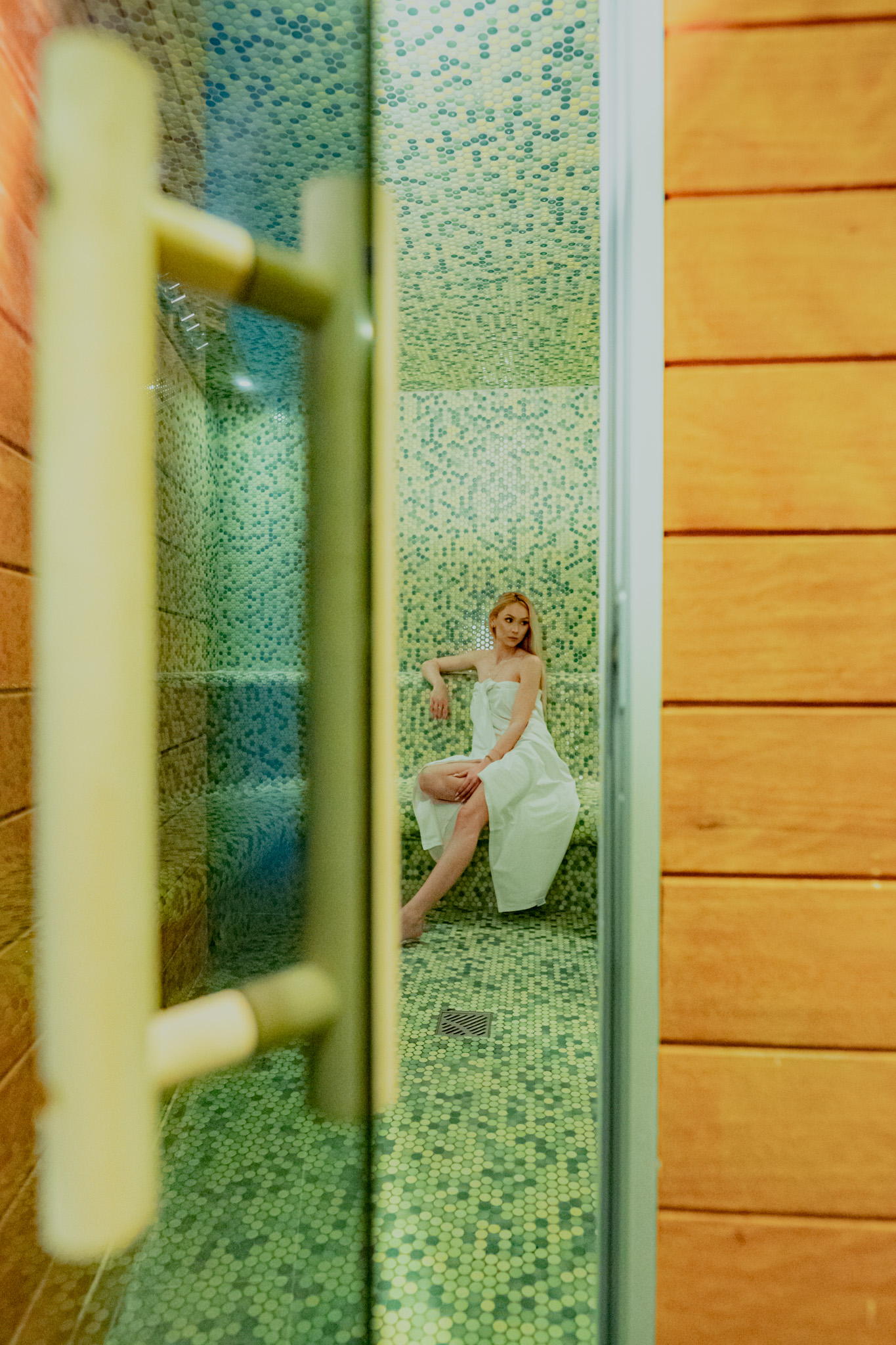 Teplota 40–60 °C, vlhkosť 100%. Pobyt v parnej saune je prospešný pre dýchacie cesty, detoxikuje organizmus, prekrvuje a zjemňuje pokožku.